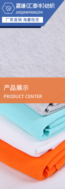 平紋布:各類(lèi)拉架平紋、普通平紋、花式平紋,面料紋路清晰、光澤好,成分包括100C、100T、100N、T/C、CVC、N/C、N/T、MODAL、TENCEL、ROYAN、BAMBOO等,適宜合類(lèi)休閑、運(yùn)動(dòng)、時(shí)尚、商務(wù)及內(nèi)衣類(lèi)服飾.<br /> 珠地布:各類(lèi)單雙珠、六角、斜紋珠地,珠眼飽滿(mǎn)、顆粒清晰,伸縮保形性好,吸濕、透氣,可兼做抗紫外、吸濕導(dǎo)汗、香味等功能,適宜各類(lèi)休閑、商務(wù)、運(yùn)動(dòng)類(lèi)T恤.<br /> 健康布:組織精密、紋路清晰、手感爽滑立挺,膚感強(qiáng),適宜各類(lèi)運(yùn)動(dòng)、休閑、時(shí)尚類(lèi)服裝,成分包括100C、100T、T/C、CVC、C/R等.<br /> 衛(wèi)衣布:各類(lèi)單、雙衛(wèi)衣,拉架衛(wèi)衣,布面肌理豐富,耳仔整齊,立體飽滿(mǎn),有良好的吸濕透氣及保暖功能.<br /> 不倒絨:保暖、透氣,不起球、不掉毛,適宜合類(lèi)休閑套裝,情侶、新套裝、保暖內(nèi)衣.<br /> 橫機(jī)面料:11、22及提花類(lèi),用于各類(lèi)領(lǐng)袖及下欄配套.<br/>